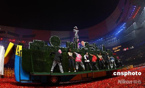 9月17日晚,北京2008年殘奧會(huì)閉幕式在國(guó)家體育場(chǎng)舉行。在閉幕式上下屆舉辦城市英國(guó)倫敦進(jìn)行了“倫敦八分鐘”表演。 中新社發(fā) 杜洋 攝