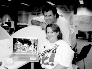 鄧斯金夫婦住在威斯汀酒店,步行離主新聞中心只有15分鐘路程。一般他們早上7時就起床,吃完早餐后就會散步去工作室。“這也算是我們的早鍛煉。”吉咪是個活躍分子,不等提問完便急著回答。“事實上,在茫茫人海中找到了我,得算是他的運氣。”埃德滿臉堆笑地附和。這是一段浪漫的輪椅情緣。從小,吉咪的夢想就是征戰WNBA。性格外向的她在籃球場上總是最引人注目的小明星。但14歲那年的意外車禍,瞬間讓美麗青春變得死氣沉沉。“我的兩條腿都不能動了,今后就只能在輪椅上度過余生。那個時候,我不是沒想過死。”