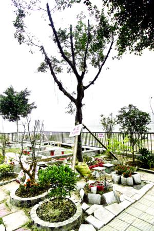 “砌椅子的水泥是附近工地送給我的,這些樹是我用幾包煙換來的!”鄭依伯對自己一手建起的“公園”頗有些得意。他每個月也就千把元退休金,所以得力爭花小錢辦好事。鄭依伯人緣好,除了那幾株桂花樹和盆栽鮮花讓他投資了三百多元,其他的石材、花木都來自好心人的饋贈。老人手上那把造型獨特的花鋤,是他這個昔日的“全省勞模”仗著好手藝親手做的;那十幾張桌椅,是他自己動手砌的。最后,他還掛上個牌子———“愛護花園人人有責”。