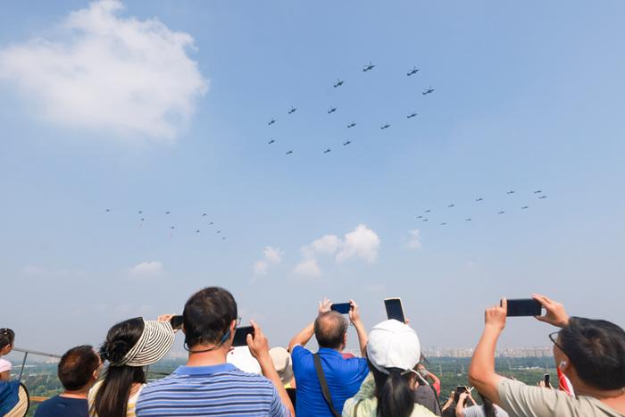 (抗戰勝利80周年)紀念中國人民抗日戰爭暨世界反法西斯戰爭勝利80周年大會在京舉行 民眾關注空中梯隊