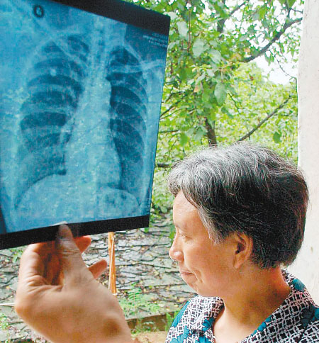 采訪中,記者從楊花花提供的X光片上看到,拍片時間為2010年6月30日上午9時許,檢查部位是楊的肺部。據楊講,她還需要治療,但礦上給家屬施壓就提前出院了。“到現在頭還突然地疼,天天吃藥呢。”