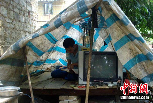 此后,吳萬(wàn)杰的父母則擠在不到五平米的小廚房里,拿門板當(dāng)床入睡。而吳萬(wàn)威便一直“蝸居”在為躲避洪水而建的樹(shù)上“小棚”上。不久,吳萬(wàn)杰高考完回家,因無(wú)處居住,吳萬(wàn)威便在撿來(lái)些木棍、木板又幫吳萬(wàn)杰在樹(shù)上搭了個(gè)棚,并在棚內(nèi)拉上了電燈。兩兄弟就這樣在樹(shù)上住了近半個(gè)月。有樹(shù)下過(guò)路人嘲笑他們住“鳥(niǎo)巢”,也有好心人提醒他們:電燈線路沿著樹(shù)感極易導(dǎo)電,打雷下雨天住在很危險(xiǎn)。于是,兩人又將樹(shù)上的“小棚”搬到地上。然而地面泥土潮濕,“小棚”空間過(guò)于狹小加上蚊蟲(chóng)叮咬厲害,弟弟便讓哥哥萬(wàn)杰進(jìn)廚房與父母同住。而弟弟自己一個(gè)人至今依舊“蝸居”在外面的小棚里。在此期間,吳萬(wàn)杰接到了來(lái)自長(zhǎng)江大學(xué)的金融學(xué)專業(yè)錄取通知書(shū)。