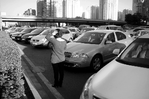 昨日17時30分許,交警在多次提醒無效的情況下,開始張貼罰單,占道近4個多小時的車輛陸續離開。