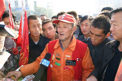 10月22日,記者見(jiàn)到了63歲的尚志德老人。他面容黑瘦,頭戴一頂紅帽,騎著一輛破舊的自行車(chē),上面插著幾面布滿(mǎn)灰塵的彩旗。據(jù)了解,尚志德老人于2001年5月1日從黑龍江省牡丹江市出發(fā),獨(dú)自騎著自行車(chē)越過(guò)我國(guó)最北邊的漠河,走過(guò)遼闊的內(nèi)蒙古大草原,經(jīng)過(guò)冰天雪地的西藏。