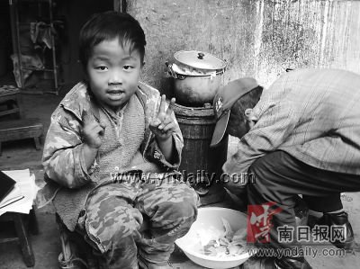 中午1時(shí),是祖孫兩人的午飯時(shí)間,一碗清水煮白菜、一碟咸菜就是兩人的下飯菜。“我最喜歡吃的東西就是腐乳拌飯,還有蘿卜、白菜……”問起珍珍最喜歡吃的東西時(shí),她響亮地回答。給她照相時(shí),她就沖著鏡頭做鬼臉,笑嘻嘻地比著V字形的手勢(shì),天真無邪的樣子,讓人看了既心疼又心酸。