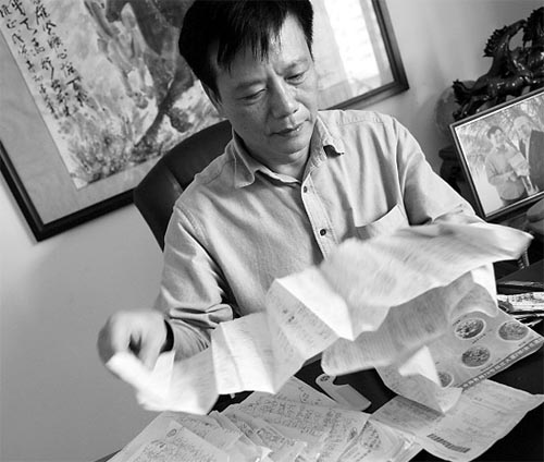 由于不會用電腦打字,邢詒前只能將信手寫在紙上,然后再將草稿拿到樓下的打字店打印。因?yàn)槭窍氡磉_(dá)自己最真實(shí)的想法,當(dāng)正兒八經(jīng)坐下來對著信紙的時候,邢詒前倒寫不出來了。經(jīng)常是吃飯、走路或者抽煙、睡覺的時候,突然間來了 “真感覺”,就趕快將這種感覺寫下來。與這種寫信方式相吻合的是,記者看到邢詒前寫給曾蔭權(quán)行政長官的信的一大沓草稿,有的是廣告單的紙,有的是傳真紙,有的包裝紙,還有的是吃飯時墊桌子的紙。每寫完一段,就到打字店去打一段,如此反復(fù),一封信寫了20多天才完。