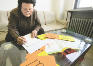 說到去年長春舉辦亞冬會,姜淑蘭就想志愿帶外國友人看看美麗的長春,但對外語一竅不通,所以這個愿望只能作罷。直到兩個月天前發生的一件事情,才又堅定了老人學英語的決心。那天一個黑人小伙子焦急地跑到老人面前,嘰里呱啦地說了一通,老人很無奈地搖搖頭。老人當時就想,要是自己懂英語,那該有多好。所以從第二天開始,姜淑蘭找孫女要來了英語課本,自己在家閉門造車,老人把26個英文字母倒是認全了,但字母組合到一起,老人就咋也整不明白了。所以老人開始上街尋找外語學習班。但沒想到找到的前兩個學習班都因為老人年紀太大,沒有接收她。后來老人就將自己的年齡隱瞞了10歲,但仍然沒有人收她。老人依舊倔強地認為自己不但能學會英語,并且能和年輕人一樣能學好。 (記者 蔡錚 陶彬)
