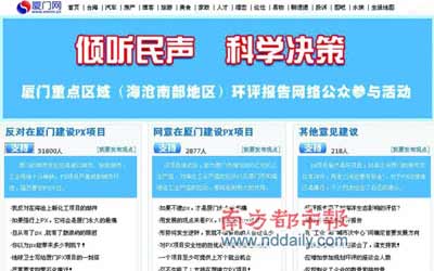 12月8日,廈門網忽然開放了一個投票平臺,名為“環評報告網絡公眾參與活動”,里面明確列出支持或反對PX項目建設的選項,還可以進入一個專門的論壇發表自己的看法。