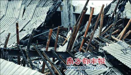 昨日上午11時15分,增城市新塘鎮大敦村偉強織廠發生坍塌事故,1700平方米的廠房屋頂由東向西在不到10秒的時間內全部塌下。廠內當時有18名工人在上班,石棉瓦、鐵皮連同鋼材、木梁朝他們砸來。據官方統計,事故造成1人死亡兩人輕傷。但記者從醫院了解到,10人送院觀察,截至昨晚7時30分,仍有7人留醫觀察。據調查,11月初,工廠老板曾在車間加裝了石膏天花。