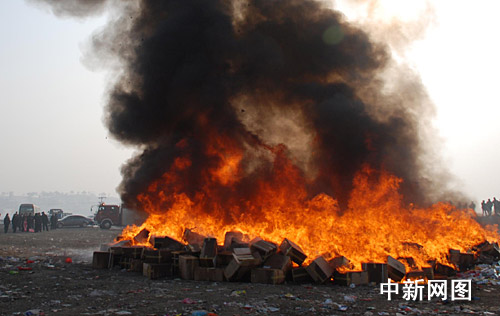 上午10時30分,隨著吉林市市政府副秘書長陳波一聲令下,吉林市煙草專賣局的工作人員將火把拋向了正待銷毀的煙堆,熊熊大火頓時燃起,銷毀假煙制品活動正式拉開序幕。直至11時20分,大火才逐漸熄滅,整個銷煙活動持續了近一個小時。