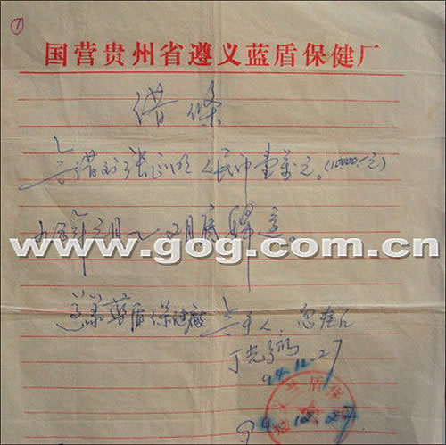 張某的父親告訴記者,兒子入獄兩個月后,想進監獄醫院,以學得一技之長。鑒此,他找到時任院長丁光弼要求關照,丁答應讓兒子進醫院,但同時向他提出了借款1萬元的要求,理由是:監獄下屬“三產”企業遵義藍盾保健廠缺乏資金。張某父親說,為了兒子,他向銀行貸了1萬元,于1994年12月27日交給丁光弼后,丁和監獄醫院財務人員忽桂紅共同在借條上簽了字,并蓋上了“遵義藍盾保健廠”公章。