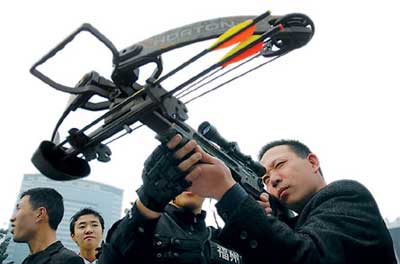 福州特警最新武器裝備警用弓弩 射程50米(圖)