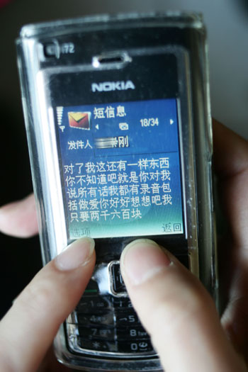 1月28日,麗娜的手機突然收到了一條短信:“我這有一樣你的東西,你不知道吧?就是你對我說的所有話我都有錄音和視頻,包括咱們在一起××,你好好想想吧!我只要2600塊錢。”麗娜看到這則短信后非常害怕,就打電話給王剛,希望他不要有過激行為,但王剛說如果不給錢,就讓全世界都知道麗娜的“丑事”。