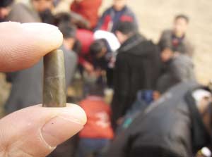 昨天上午,許多住在西石橋村周圍的村民聽說此事后,紛紛趕來尋寶。記者在現(xiàn)場看到,幾十名當?shù)卮迕衲弥ぞ咴谕炼牙飦y挖,還有的村民將剛剛挖出來的古錢幣拿給記者看。一名姓王的大爺拿著幾枚挖出來的錢幣告訴記者,過去在這座古墓周圍,曾出現(xiàn)過許多這樣的古錢幣,聽老一輩講,很久以前這里就是一片墳地,盡管也有村民種地時經(jīng)常發(fā)現(xiàn)古錢幣,但從來沒有人敢到這里亂挖的。記者現(xiàn)場看到,聞訊趕來挖寶的村民越來越多,一上午先后有上百人光顧。村民挖出的這些古錢幣上有不規(guī)則的花紋。