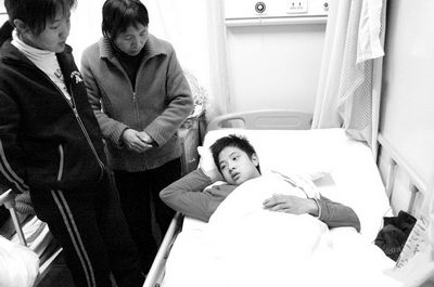 記者在泉州市第一醫院外科病房看到了年僅15歲的呂榮太,一臉稚氣未脫的他直稱頭暈,并斷斷續續地講述了事件的經過。