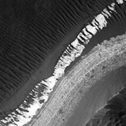 據美國《科學》雜志在線報道,這幅由美國宇航局(NASA)的火星探測軌道飛行器(MRO)拍攝的圖像(如上圖),清楚地展示了火星上細微的分層沉積物,就好像地球湖泊中的湖水形成的沉積層一樣。