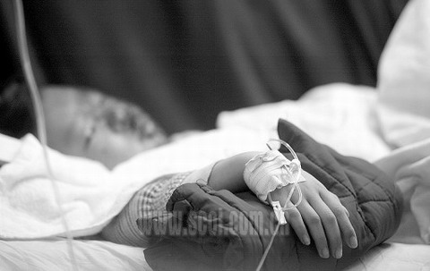一間病房大門敞開,門外靜悄悄的。門口坐著4個男子,沉默地吸著煙。病房臨窗的病床處,6個燈泡一直亮著,床架上掛著可愛的小白兔和kitty貓。一個小女孩默默地看著懸掛的玩具,她叫彬彬 (化名)。記者靜靜地看著她,不忍打擾。只要一說話,彬彬被燙傷的臉部就要牽扯動,痛得直掉淚。