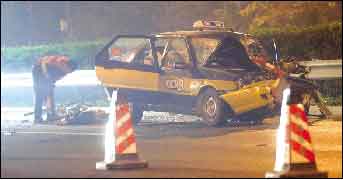 昨天凌晨3點左右,朝陽區(qū)機場高速出京方向四元橋西側(cè),一輛金建公司的出租車闖入最內(nèi)側(cè)車道正在施工的封閉區(qū)域內(nèi),撞上一輛貨車,導(dǎo)致車內(nèi)兩名LG公司的韓國乘客一死一傷,出租車司機和一名工人受傷。經(jīng)查,