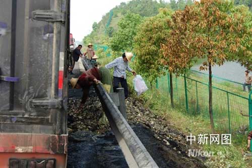 京珠高速一貨車起火烤焦雞蛋 村民上路哄搶(圖)