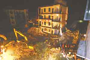 文化鎮(zhèn)中心校伙食團職工曾家福介紹,綜合樓是1995年下半年建的,1996年秋投入使用。水泥欄桿掉光的教學樓是1994年所建。記者看到,綜合樓屬預制板式樓房,垮塌的廢墟中橫七豎八地倒著預制板,僅橫梁可見少量鋼筋。 記者冉啟虎