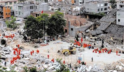 與汶川相鄰的平武縣,在12日的大地震中遭受重創。以往九寨旅游環線上的明珠,此時已滿目瘡痍。全縣80%以上房屋受損,3萬多居民與游客被轉移至安全區域;該縣的南壩和平通兩鎮遭到沉重打擊,截至前晚不完全統計,已有1000余人死亡,上千人被埋。在當地政府帶領下,來自全國各地的解放軍、武警、消防指戰員正綿延不絕地馳援平武。昨日,本報記者深入南壩鎮救災現場,綿陽市副市長、平武縣抗震救災指揮部負責人邱明君的話語擲地有聲:“時間就是生命,我們將盡最大努力搶出每一名生者!”