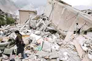 記者從李金泰家往回走的路上,經過一排傾斜的房屋前時,走在記者前面的一名醫務兵突然呼喝了一聲:“快走!”醫務兵拼命地往空曠地段奔去,一個本能的反應——余震!記者奪命地跟著醫務兵跑離傾斜房屋的樓下。果然,又是一陣從地底傳來的輕微搖晃。“你們兩個要小心啊,這些樓房已經沒有支撐點的了,再來多幾次余震的話,說倒就倒的。”醫務兵告誡記者。盡管暫時安全了,但剛才一幕讓記者真切地感受到大地震發生的那一瞬間的恐怖。