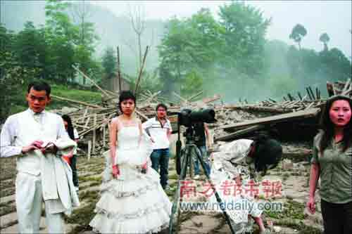汶川地震以來(lái),不斷有災(zāi)區(qū)的網(wǎng)友找到上網(wǎng)途徑,講述他們慘痛經(jīng)歷。前天,一組地震瞬間拍下的婚紗照在網(wǎng)上出現(xiàn),讓觀者如同一起經(jīng)歷了那個(gè)驚心動(dòng)魄的瞬間。