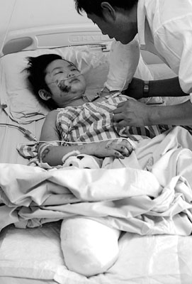 “媽媽,我的手腳呢?”這是昏迷4天的羅穎醒來后對媽媽說的第一句話。前日上午10時,看著剛剛醒來身體還很虛弱的女兒,陳樹彬眼眶含著淚看著女兒。母女倆相視幾分鐘后,陳樹彬說:“穎穎,你的左手和右腿受了很重的傷,已經被包扎好了,你身體虛弱所以沒有感覺,你傷好了,扯了紗布就有感覺了。”聽著妻子與女兒的對話,坐在一旁的袁海轉身,抹了一把眼淚,但隨即轉過身,看著女兒望過來的目光強顏微笑。(特派記者 李雙全 鐘臻)
