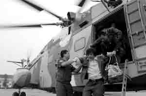 隨著救援工作從縣級城市向周邊鄉鎮的延伸,被地震和泥石流大面積破壞的山間公路越來越嚴重地影響到地面搜救的推進速度,在這樣嚴峻的形勢下,開辟一條迅捷安全的空中通道顯得尤其重要。綿竹清平鎮、彭州銀廠溝、汶川縣映秀鎮……將這些點與成都串聯起來,便是南空某搜救團開展抗震救援實施行動以來的航線圖。