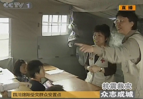 中新社綿陽五月二十一日電 今天位于四川綿陽的災民安置點迎來一批特殊的來賓:鄧亞萍、高敏、楊揚和謝軍。