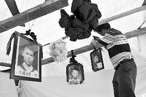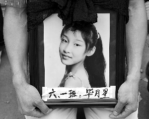 5月21日14時(shí),綿竹市富新第二小學(xué)(簡(jiǎn)稱“富新二小”)的正門至坍塌校舍之間的道路上,擠滿了前來祭奠遇難學(xué)生的家長(zhǎng)們。捧于家長(zhǎng)胸前的相框內(nèi),是127張?jiān)?jīng)鮮活的臉。
