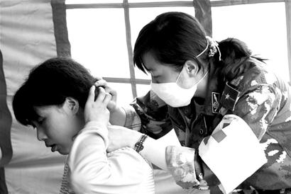 來到前線,尹萍除了救治災(zāi)民外,還要負(fù)責(zé)給尸體消毒。只要挖出的尸體一露出頭或腳,尹萍就會第一個(gè)沖上去給尸體消毒,再由戰(zhàn)士抬出來。由于許多戰(zhàn)士都是第一次接觸尸體,多少有點(diǎn)害怕,抬一具尸體就要換個(gè)口罩。尹萍總會上前安慰:“尸體沒有腐爛就沒有毒,大家不要怕。”