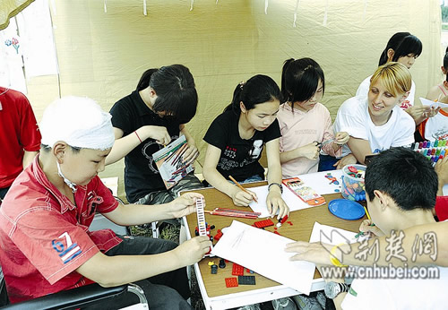 記者走進一座座帳篷,只見里面擺滿B超儀、心電圖儀、X光機和移動手術臺等,醫療人員正忙碌著為傷員們檢查、治療。“移動醫院”一角,有一座帳篷專門用于兒童心理咨詢,負責人是美麗的心理咨詢醫生奧麗婭。咨詢所內擺放著一張方桌,上面擺滿五顏六色的水彩筆和漫畫書等,奧麗婭根據每個就診兒童的情況,為他們制訂相應的心理康復方案!霸谖倚闹,奧麗婭姐姐就像天使。”11歲的吳鑫在地震中受傷,至今還頭纏繃帶,坐在輪椅上接受恢復治療。他告訴記者,奧麗婭對孩子們十分和藹,也很有耐心,經常同孩子們一起做游戲、開玩笑,大家都很喜歡她。至目前,已有20多個孩子定期接受奧麗婭的心理治療。(特派記者 宋枕濤)