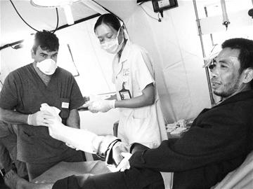 昨日上午10點半,設在綿竹孝德鎮的意大利醫療野戰醫院手術室里抬進了一名在地震中骨折的傷者。汗水從骨科醫生朱力亞諾·羅迪尼的額頭上滲出來,他一邊比劃著詢問傷者的情況,一邊用藥物清洗已經感染的部位。此刻,對朱力亞諾·羅迪尼這樣的國際志愿者來說,他只知道自己是醫生,他要醫治好更多的傷者。