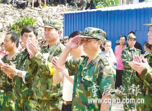 握著首長的手,袁仕聰淚眼婆娑。這位因三次路過母親和侄女遇難廢墟沒停步搶救,而是去執行其他搶救任務的上校,感人的事跡在青川城早已為老百姓所傳唱,國內很多媒體也多次報道過。但對袁仕聰來說,今天這個軍禮最讓他欣慰,“能夠得到首長的軍禮,我覺得自己得到了認可,足以讓我告慰母親和侄女在天之靈了。”