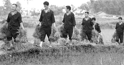 昨日上午,一支由12人組成的志愿者隊找到曾世明:“能不能為你做點兒事?”走在前面的是名40歲左右的男子,他叫靳少云。讓曾世明意外的是,靳少云竟是重慶某公司的總經理。跟在他身后的11名男子,都是這家公司的高管。曾世明“很不放心”地把靳少云等人帶到田間,這12名志愿者挽起褲管下田了。拔秧、插秧,一行人干得非常熟練,要不是看到穿在他們身上的統一著裝以及粘貼在他們衣服上的紅十字會標記,還很難讓人聯想到,他們是呆在辦公室內的白領(上圖)。幾個小時后,2畝左右的水田披上了“綠裝”。(記者王仁剛鐘蓉 攝影譚曦)