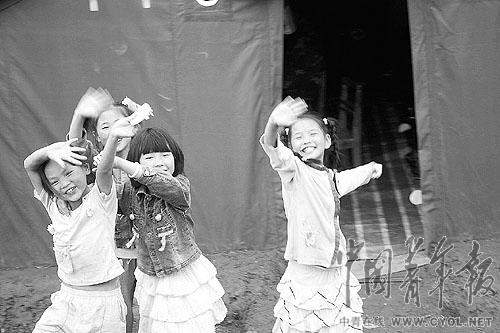 “六一”節(jié)快到了,災(zāi)區(qū)的孩子們?cè)趺礃恿耍糠孔拥沽耍婢邲](méi)了,學(xué)校停課了,他們?cè)摳墒裁茨兀繋е@些問(wèn)題,記者走訪了幾個(gè)受災(zāi)群眾安置點(diǎn)。出乎意料的是,盡管在帳篷和活動(dòng)板房這種簡(jiǎn)陋的條件下,孩子們的樂(lè)觀仍讓人動(dòng)容。