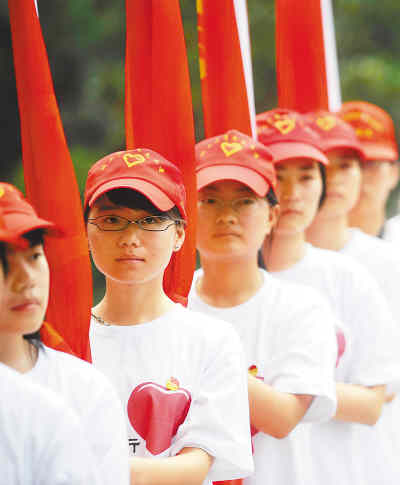 地震發生后,這里陸續收治了160多名傷員,其中有10多名孩子,大多是用直升機從汶川映秀鎮運出來的。剛來的時候,孩子們都不說話,目光呆滯。志愿者把這些孩子編入“愛心學校”,所有隊員對他們包干負責。