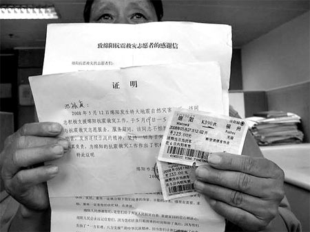 昨日中午,池先生向記者出示了身份證、退伍軍人證、往返車票及綿陽市志愿者協(xié)會(huì)開具的證明和感謝信。池先生表示,雖然他違反勞動(dòng)紀(jì)律在先,但是公司也不能扣下他之前的加班費(fèi)。