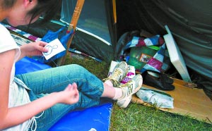 唐家山上的“一盆兒水”鬧得下游綿陽城的居民紛紛抱著家當上了山。“背井離鄉”本是件“苦活兒”,但什么事兒到了天性豁達的四川人那里,卻總能找出樂子來。