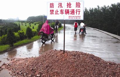 昨日中午,記者在漢江蔡甸永固堤入口處看到,干堤道路已被沙土擋住,豎有一塊“防汛搶險”的警示牌。前行數百米,至永固堤中段,可見堤頂的水泥路面有大片塌陷,兩根涵管從堤身穿過。經測量,塌陷處長15米,寬8米,最大塌陷深度約0.3米。