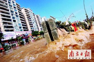 (廣東)省防總昨天下午4時(shí)的統(tǒng)計(jì)顯示,從5月25日至昨日8時(shí),廣東大部分地區(qū)連續(xù)遭受強(qiáng)降雨的襲擊,全省平均降雨量為415毫米,是常年同期雨量的2倍多。降雨量超過1000毫米的站點(diǎn)有5個(gè);超過500毫米的站點(diǎn)有424個(gè),降雨范圍達(dá)5.3萬平方公里;超過300毫米的站點(diǎn)999個(gè),降雨范圍達(dá)13萬平方公里。臺(tái)山市端芬鎮(zhèn)填坑站過程雨量1089.5毫米,深圳寶安石巖水庫前日降雨量415毫米,江門市獅山水庫站6小時(shí)雨量294.5毫米。