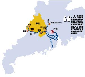 據省防汛防旱防風總指揮部昨日(15日)權威發布:廣東境內的汛情主要集中在兩大江河——西江、北江,兩江最重要的水文站高要、清遠、石角以下昨天全線超過警戒水位,預計兩股洪水將于今天在三水匯合,屆時馬口水文站將出現超過50年一遇量級的洪水。為此,省防總六工作組集中在西北江沿線嚴陣以待;全省防汛Ⅲ級應急響應依然在有序執行;肇慶河段清遠河段昨天分別實施封航全部停航;省長黃華華強調注意防御強降雨引發的山體滑坡崩塌、城鄉積澇和危房倒塌等災害。