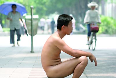 雖說裸男不攻擊行人,年輕姑娘們看見了還是躲著走。一位頭發斑白的老先生還特意停下自行車撥打報警電話,要求警方來處理街頭裸男。
