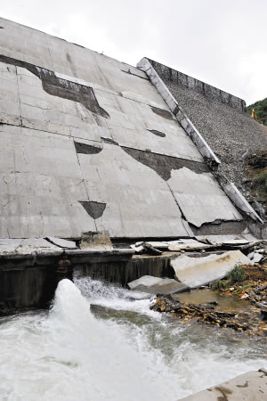 壩體扭曲嚴重變形