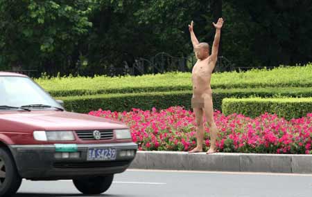 長春:“裸男”廣場上大擺造型致交通堵塞(圖)