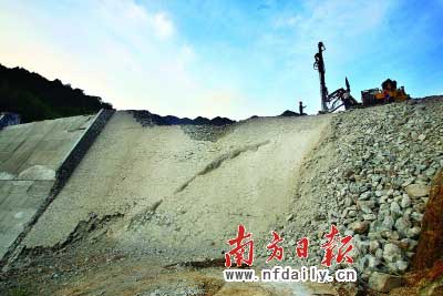 到昨天傍晚發(fā)稿時止,廣州市防總已按省防總要求,組織爆破公司14名工人,1臺大型鉆機、4臺小型鉆機已到達現(xiàn)場(見上圖,王亮攝)。目前施工通道已經(jīng)修復,正在做好爆破前的準備工作。目前,廣東省防總以及市現(xiàn)場督導組等有關(guān)專家,已經(jīng)進入現(xiàn)場與爆破公司研究分析具體爆破方案,督導爆破方案實施。