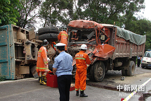 中新網梧州8月23日電(鐘易良 王剛)今天中午,廣西南梧二級公路梧州藤縣塘步路段發生三車相撞事故,造成1人死亡、4人受傷,其中2人被困。