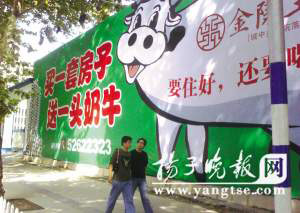 “買(mǎi)房送奶牛”的廣告在街頭很醒目。陳郁 攝