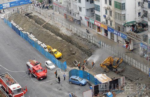 成都一段煤氣管挖爆 煤氣沖天嚇跑整街人(圖)